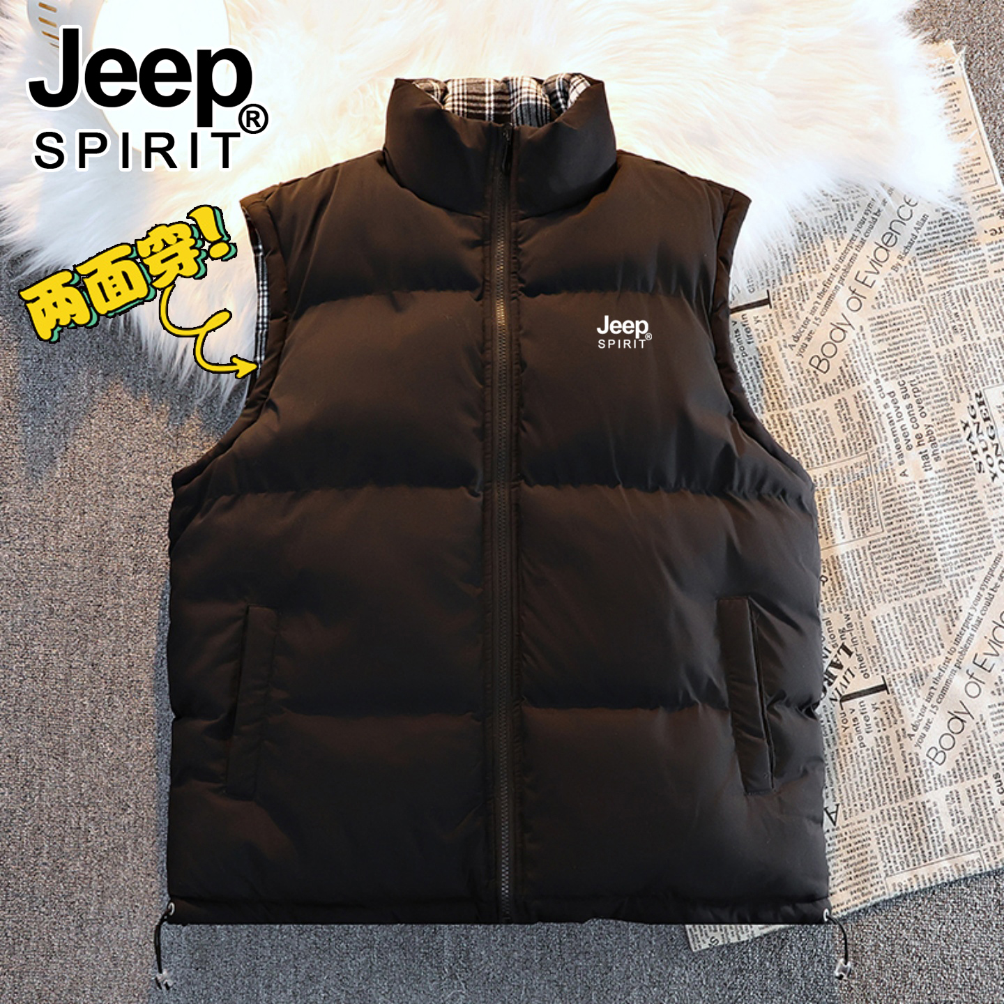JEEP双面穿马甲女2025新款秋冬季外穿保暖坎肩情侣背心羽绒棉马夹