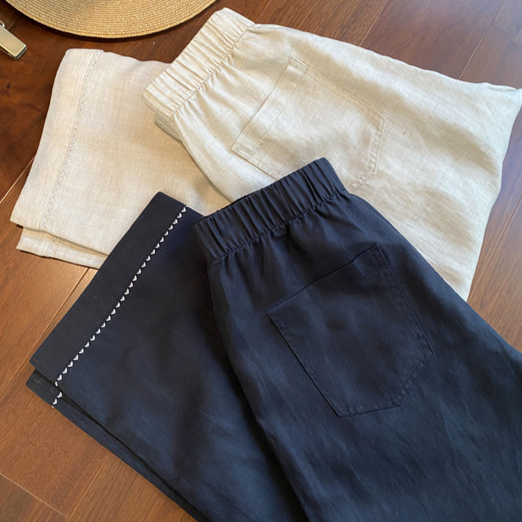 掌柜自留推!!品质就在那,极简时髦天丝亚麻花边直筒休闲裤女夏