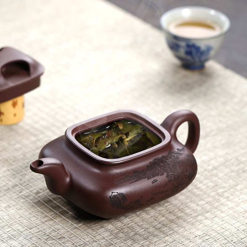 宜兴紫砂壶原矿紫k泥全手工刻绘纯手工泡茶壶茶具套装 牛盖传炉