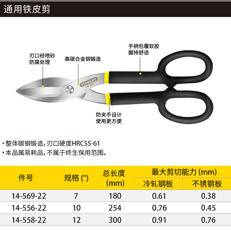 史丹利铁皮剪工业级不锈钢剪刀铁皮剪刀多功能专业金属铁丝网剪子
