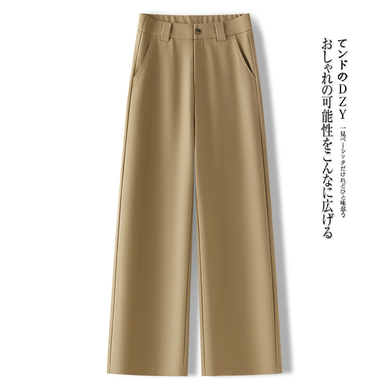啄木鸟藏青色西装阔腿裤女秋季高腰显瘦直筒裤超好看九分休闲裤