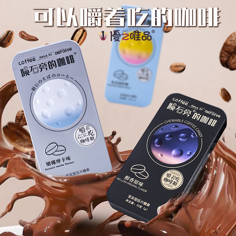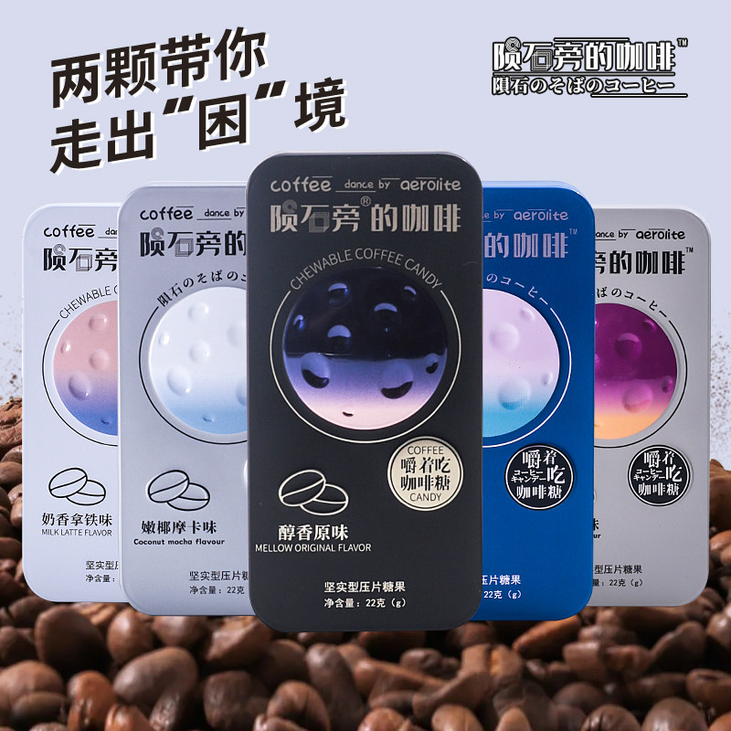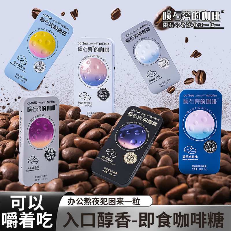 陨石旁的咖啡糖原味黑咖啡味可嚼开车上班犯困零食咖啡糖盒装22g