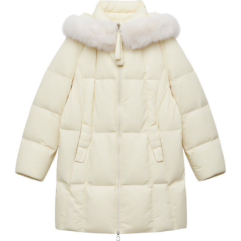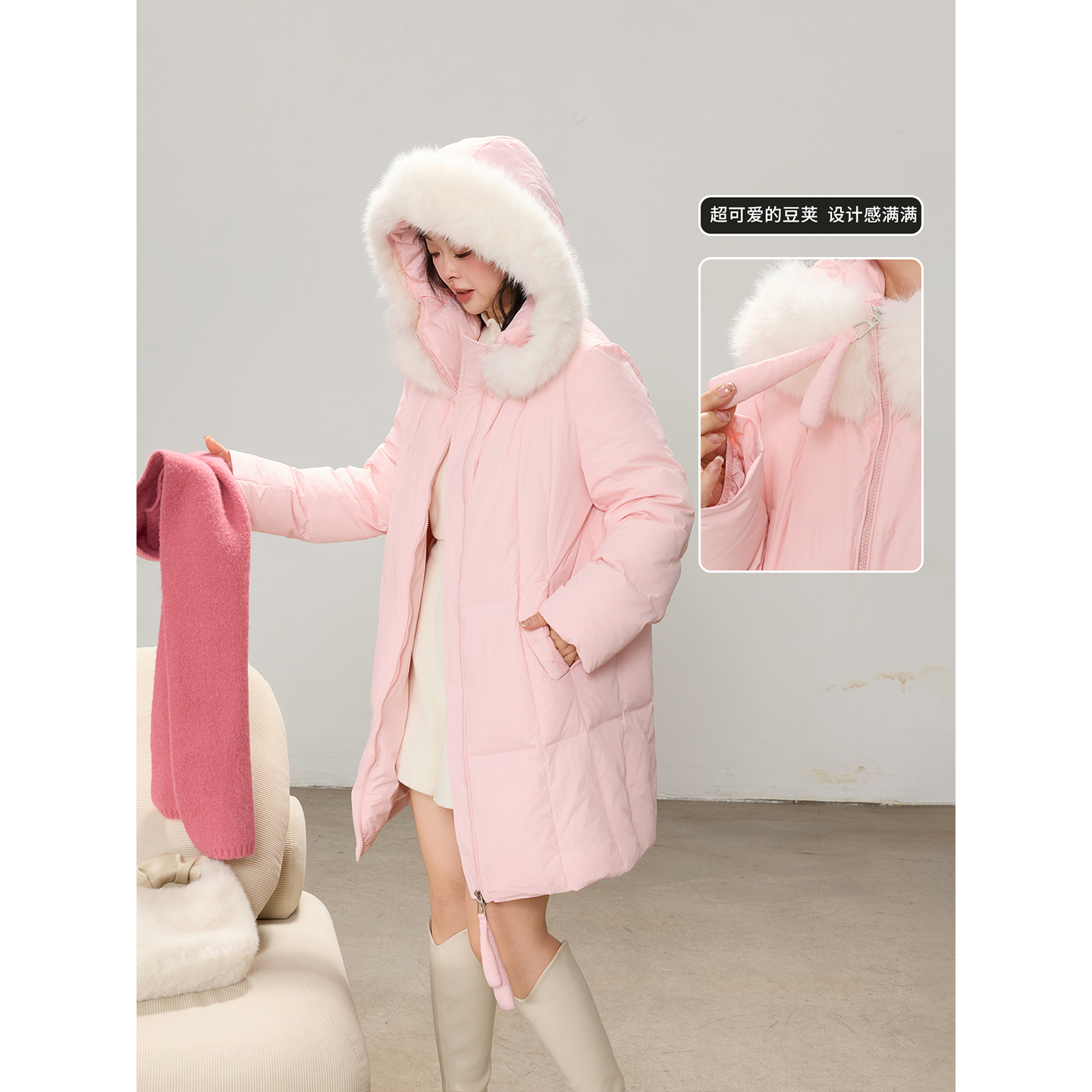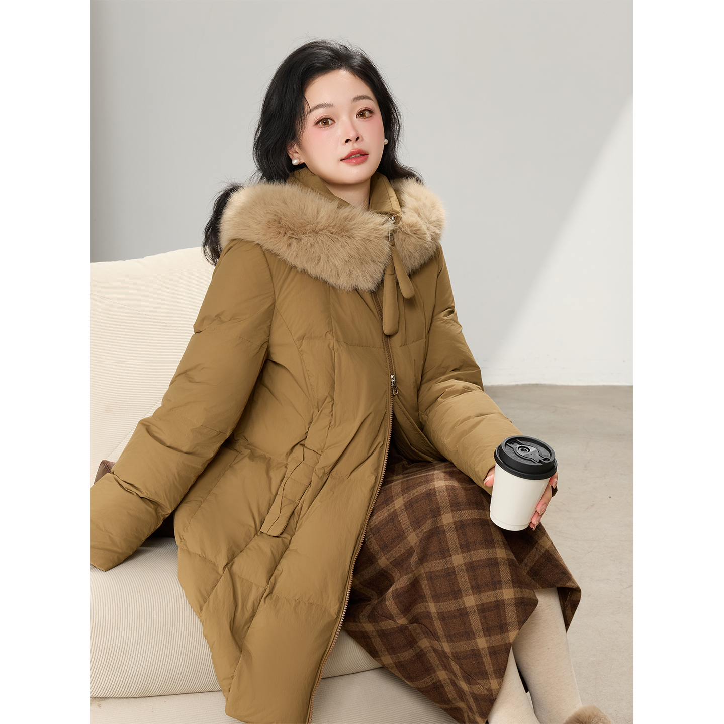 DM100大码百分百女装微胖mm冬季加厚直筒中长款毛领连帽羽绒服
