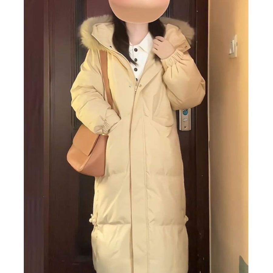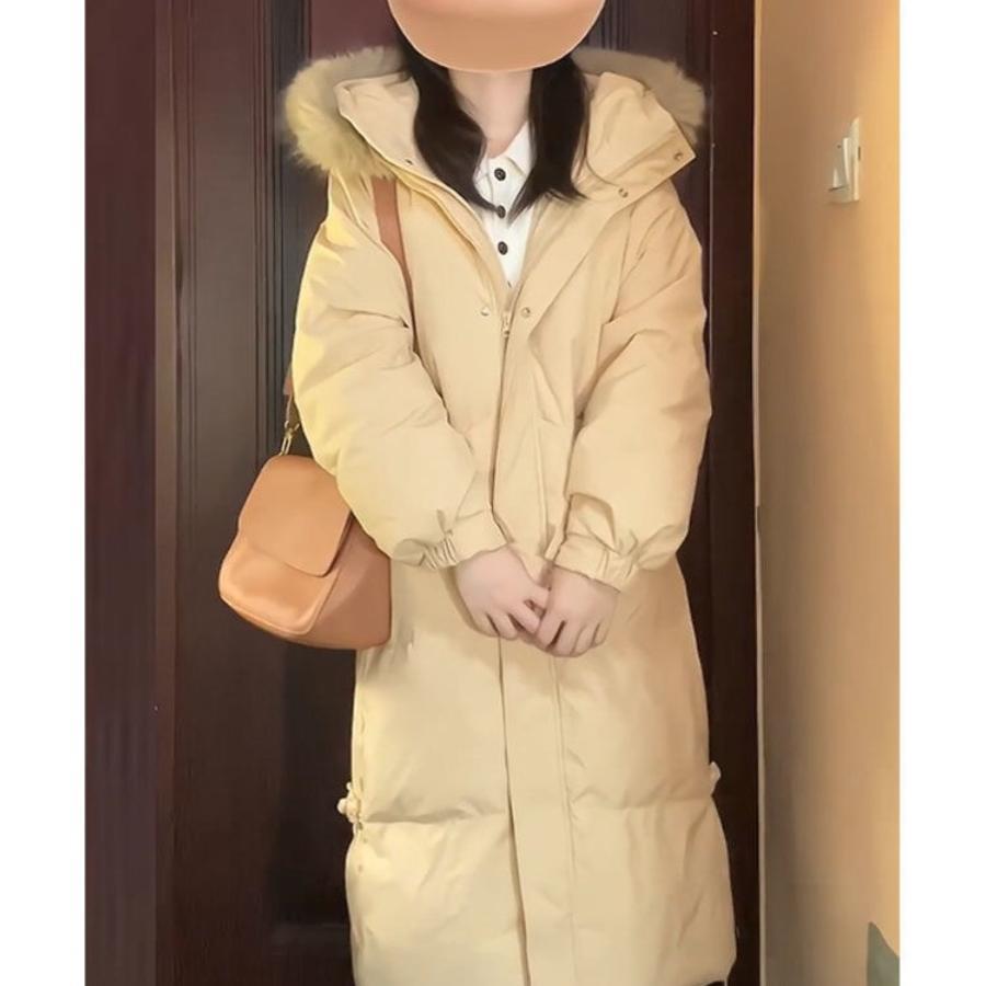 大毛领羽绒棉服女中长款2024新款冬季韩系加厚过膝小个子棉衣外套