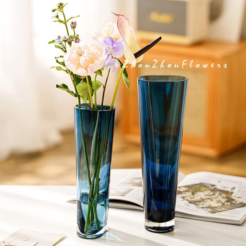 现代简约ins高级感蓝色花瓶水养鲜花玫瑰郁金香插花装饰摆件客厅