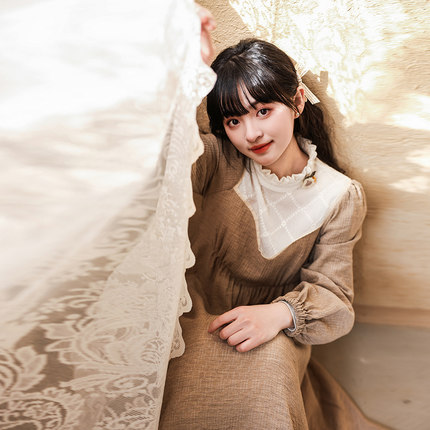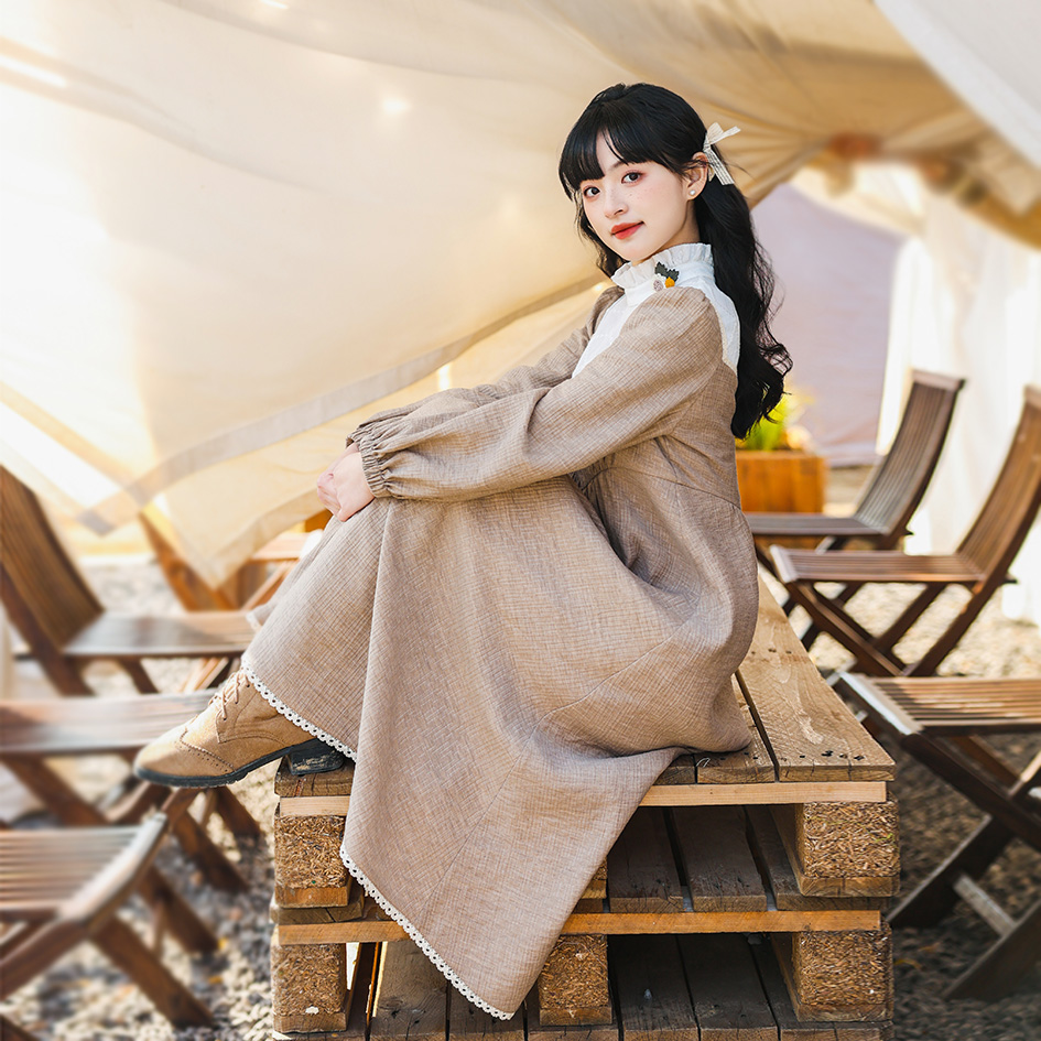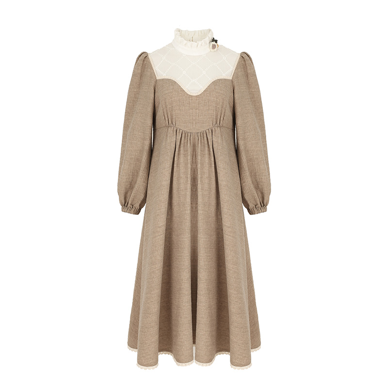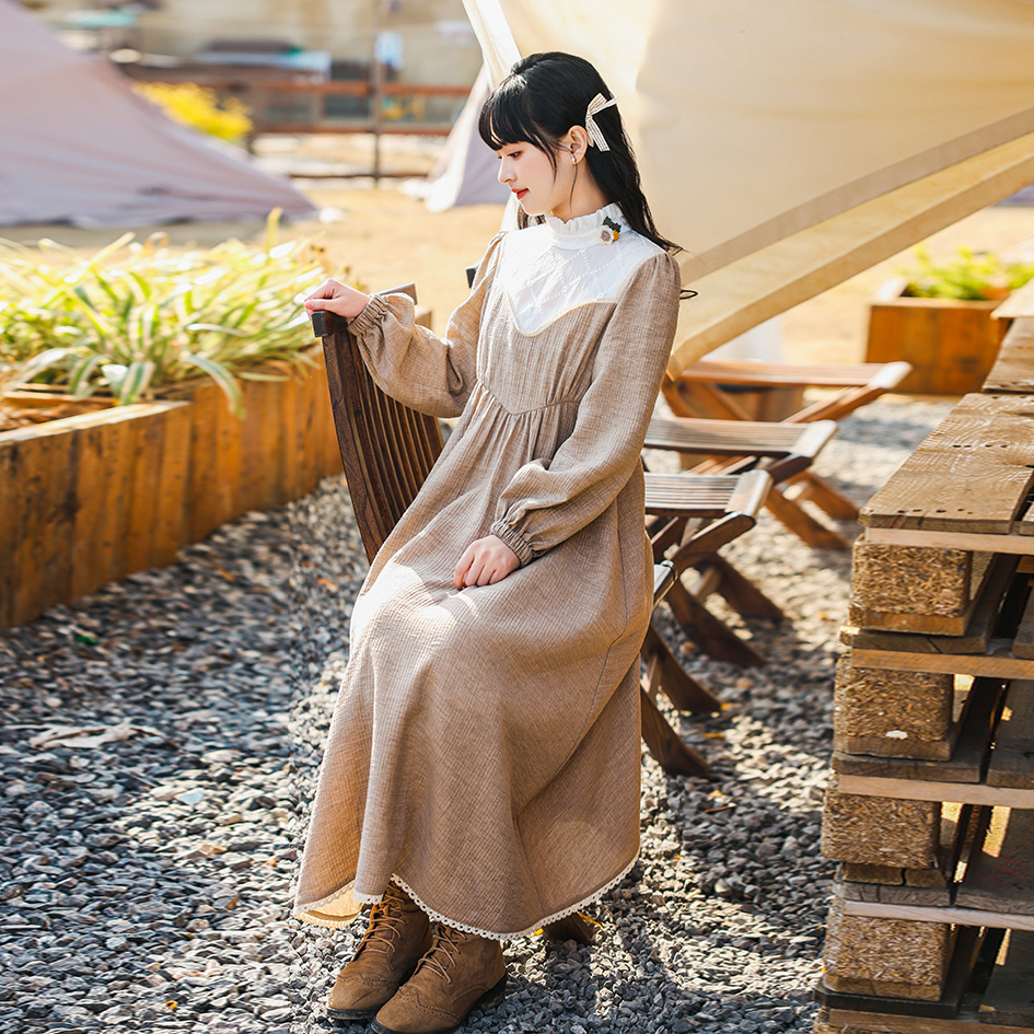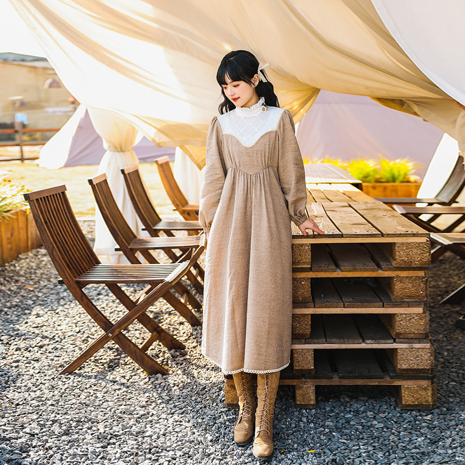 花间裳/北岛/原创法式复古立领赫本风刺绣棉麻打底连衣裙2024新款