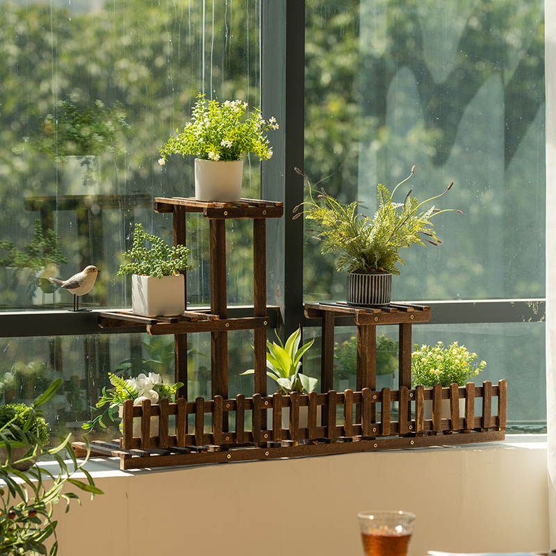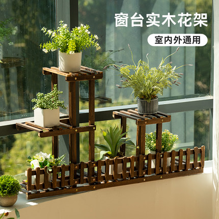 窗台多肉花架子落地阳台室内飘窗置物架多层实木装饰摆放花盆架子