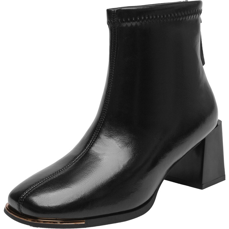 大东官方黑色短靴女款2025新款冬季高跟靴子方头切尔西靴粗跟女靴