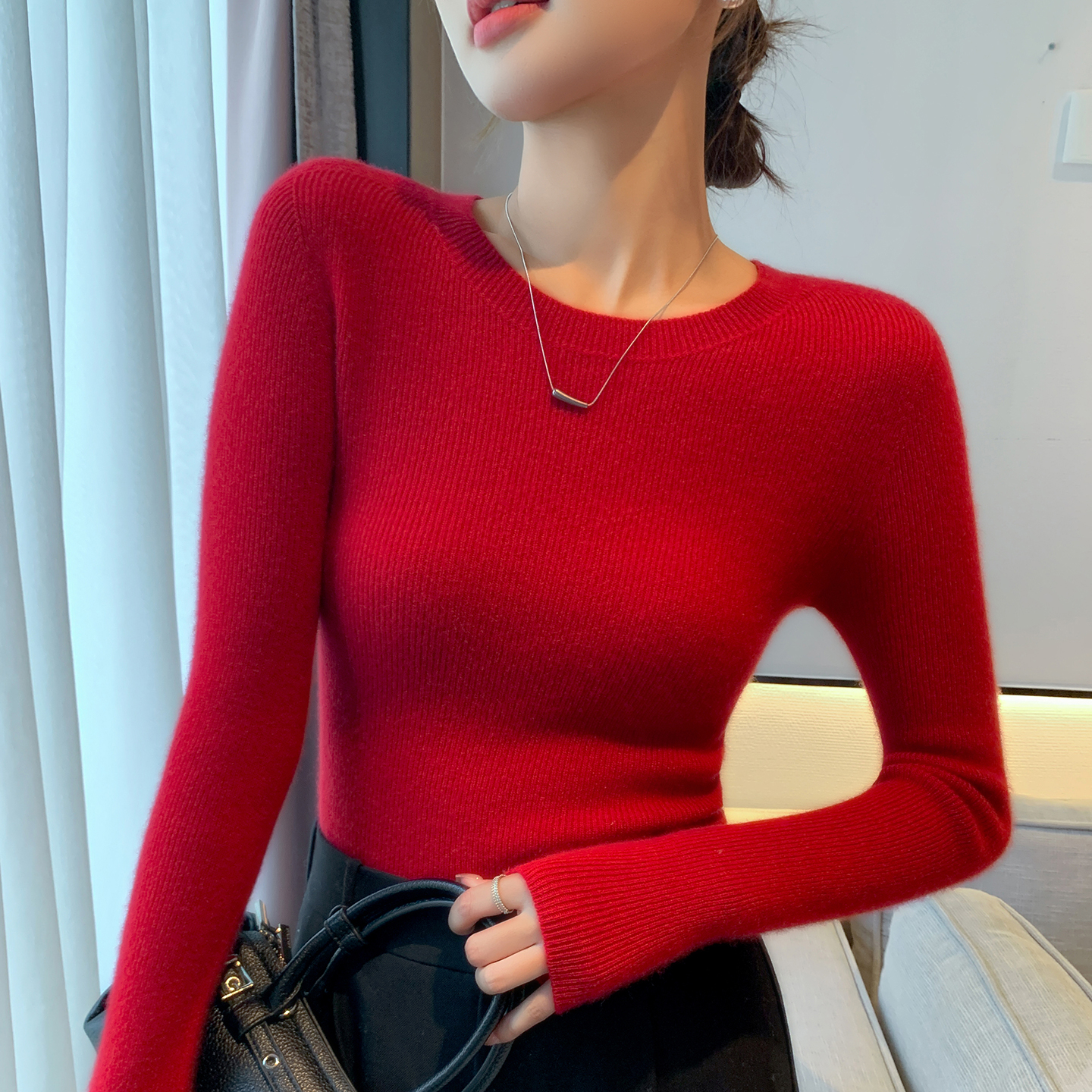 时尚百搭一线成衣圆领毛衣女秋冬内搭高级感修身显瘦针织打底衫女
