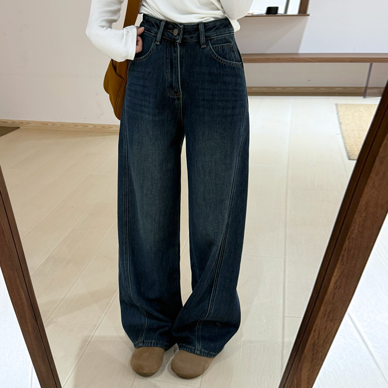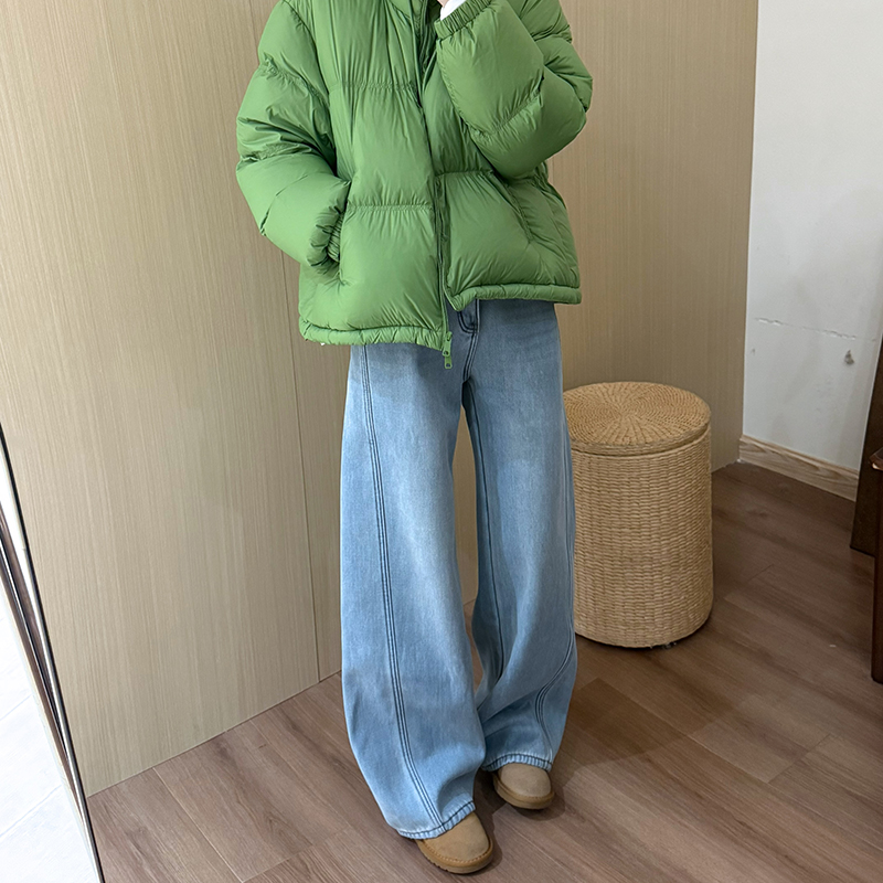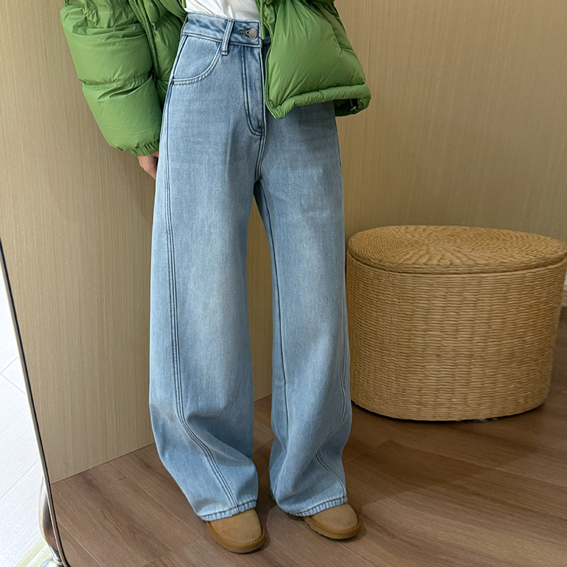 话里浅色加绒软料牛仔裤2025秋季新款韩版高腰显瘦休闲直筒长裤女