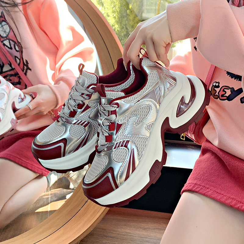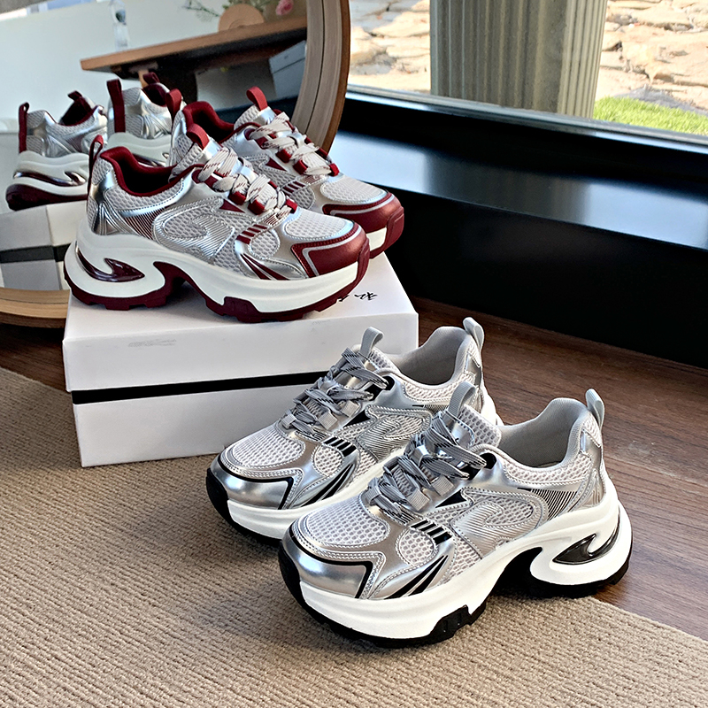 厚底老爹鞋女2025新款春季银色增高轻便百搭休闲运动鞋子女显脚小