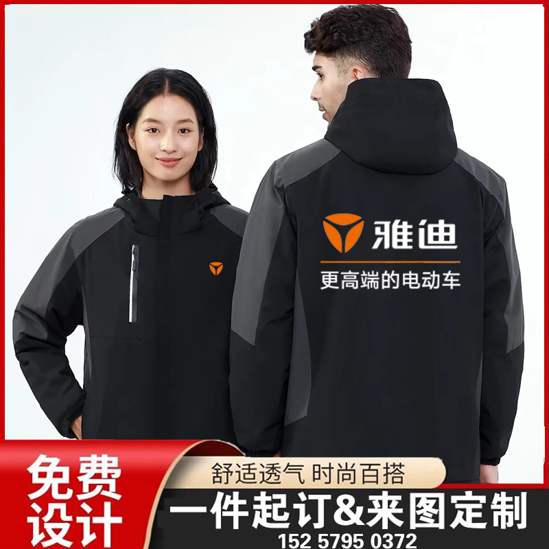 新款雅迪工作服定制电动车售后维修冲锋衣订做防风保暖外套工装灰