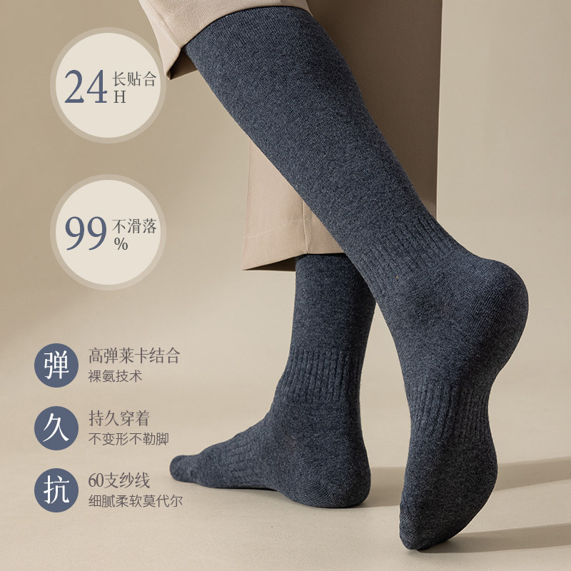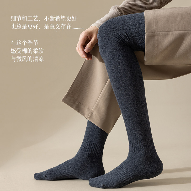 长筒袜子男士纯棉秋冬保暖大腿防臭黑白色加长护膝高筒无骨过膝袜