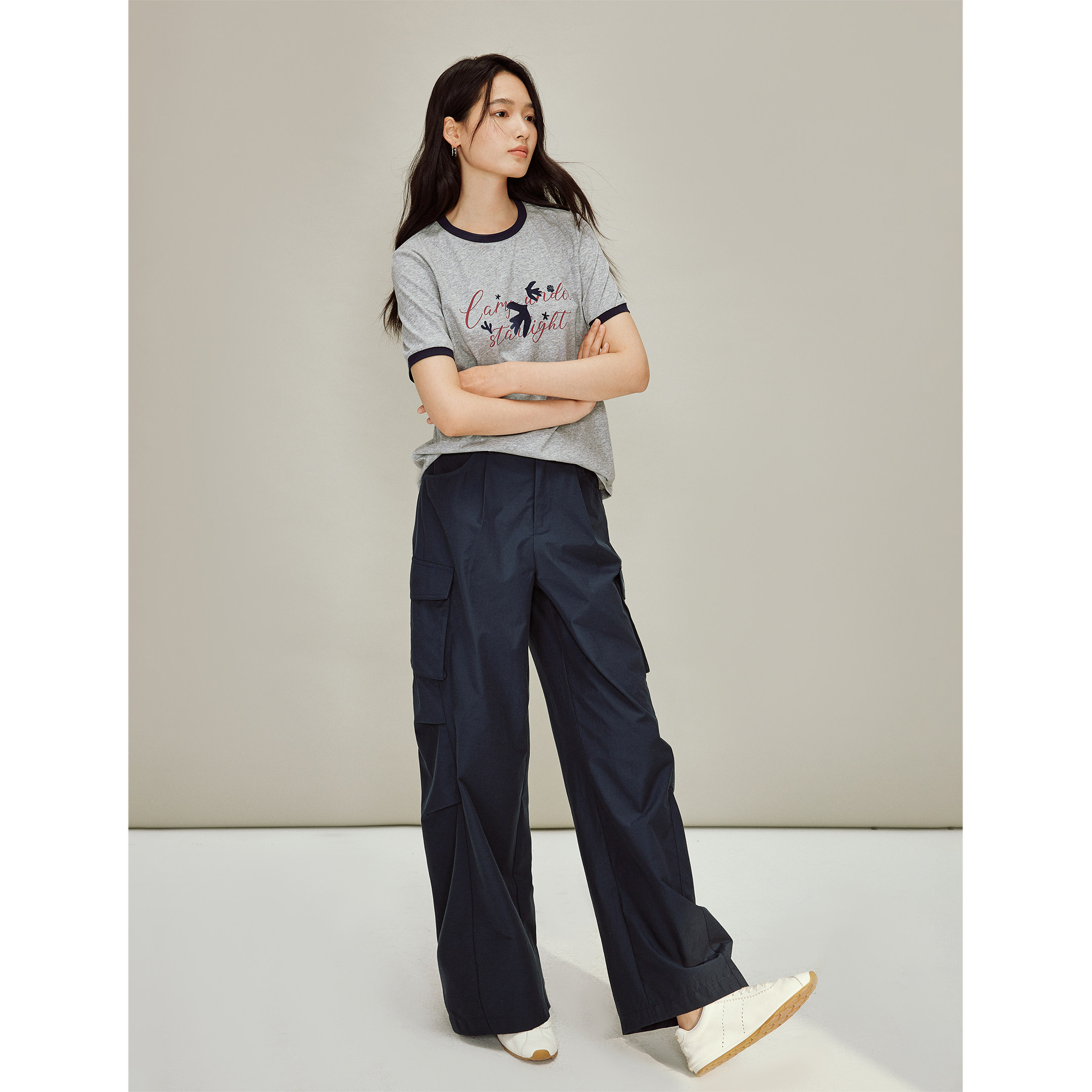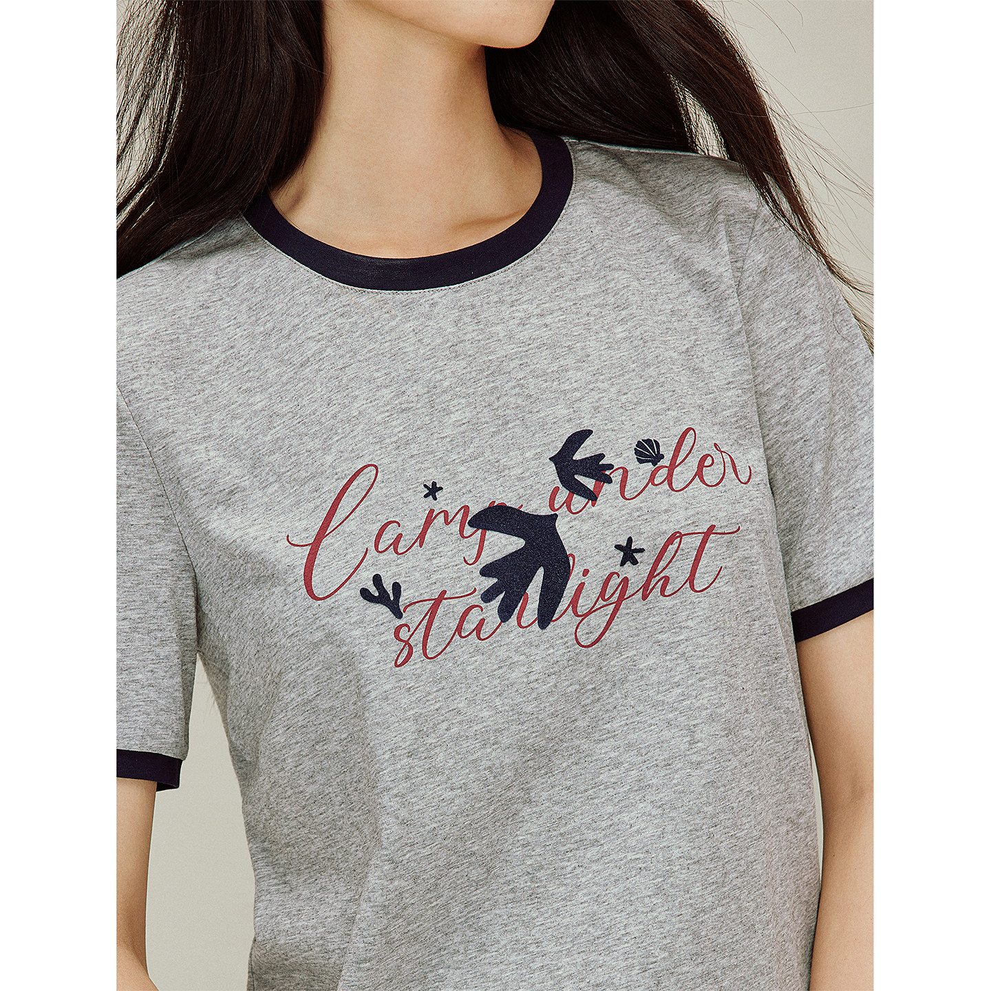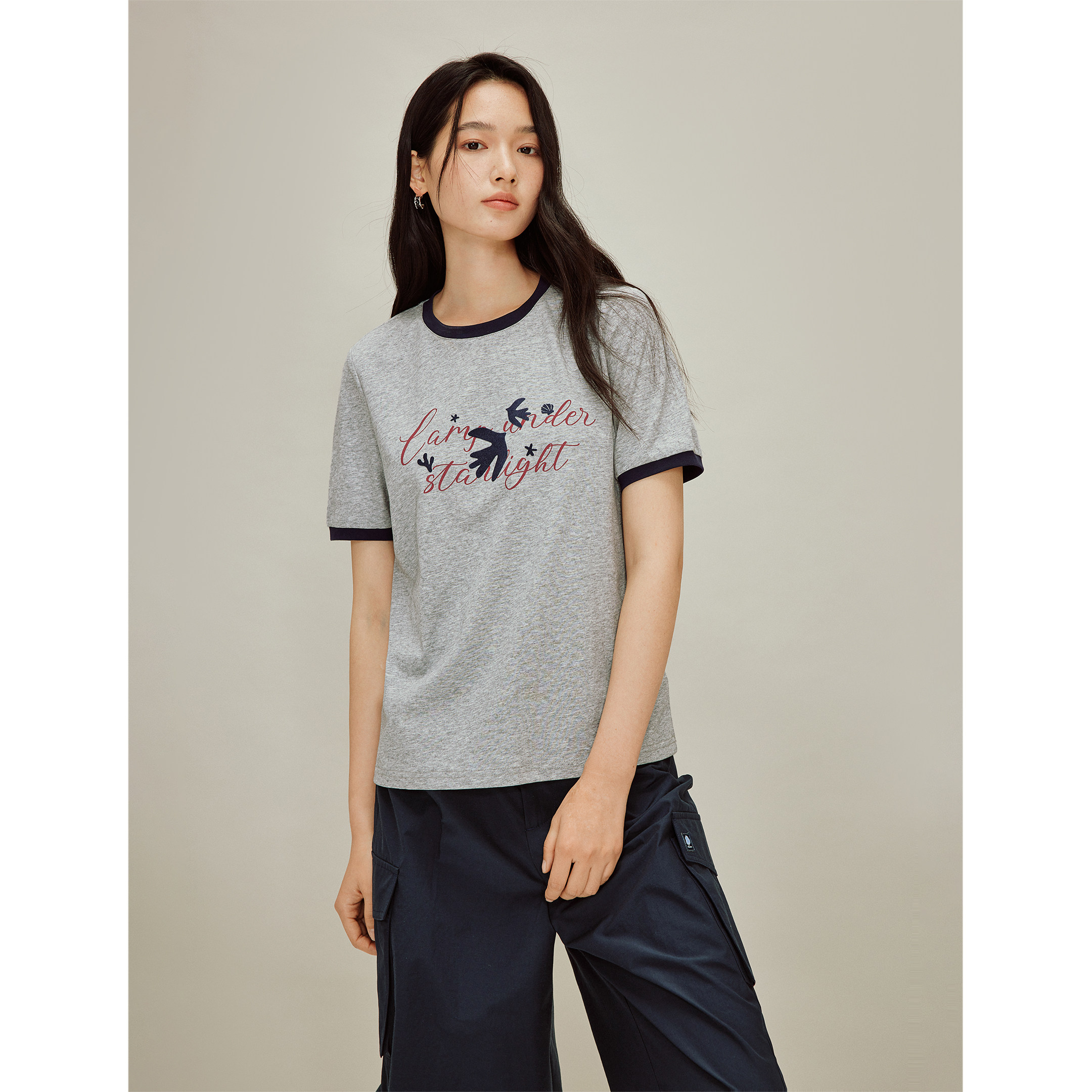 茵曼凉感索罗纳印花撞色圆领T恤2026春季女装新款宽松短袖上衣