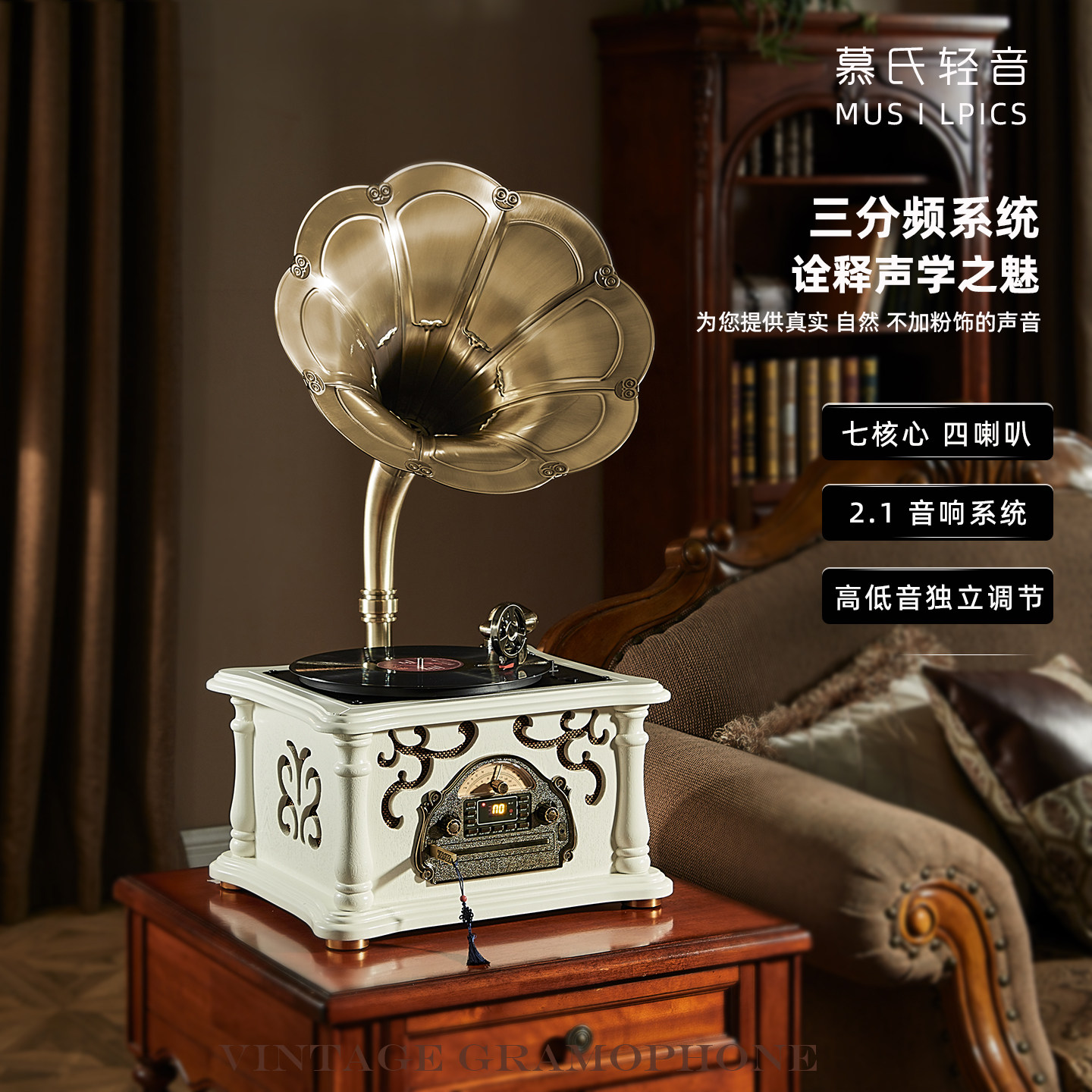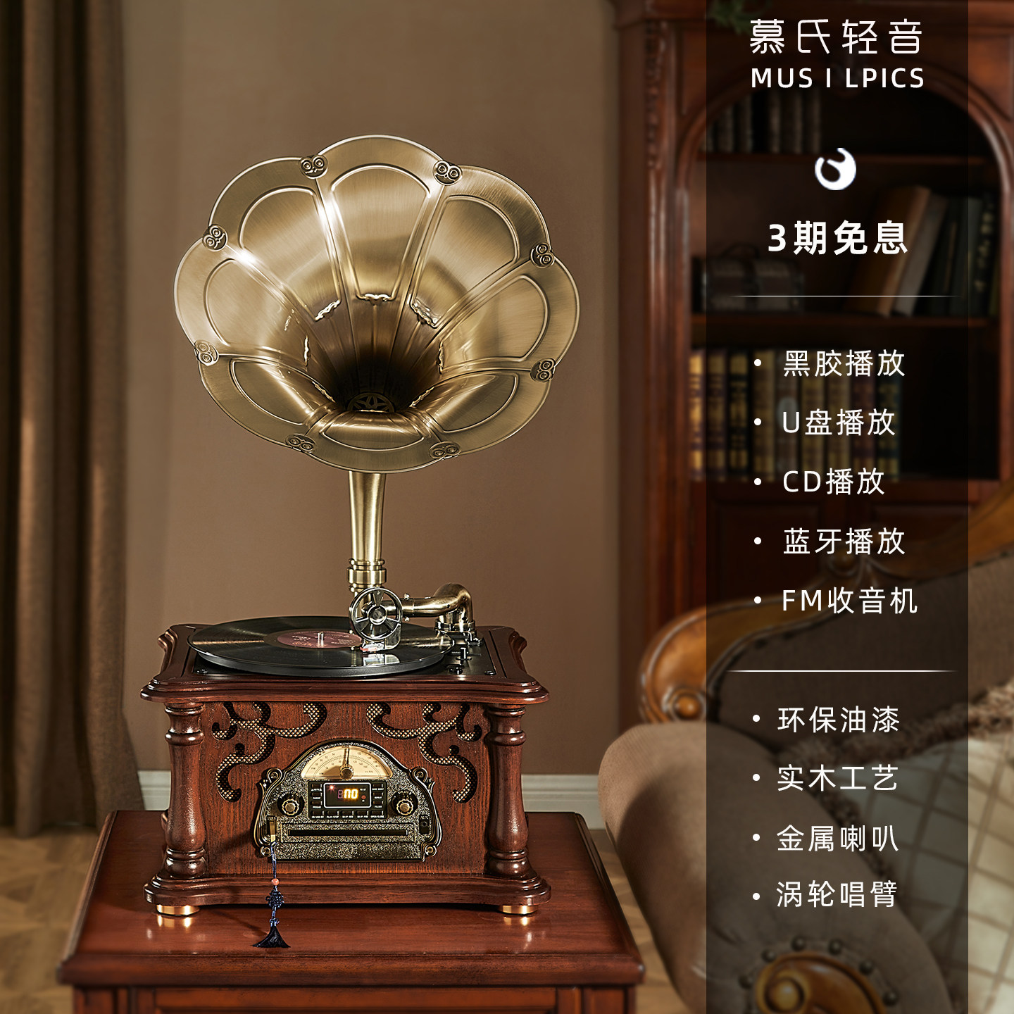 慕氏轻音留声机cd黑胶一体唱片机