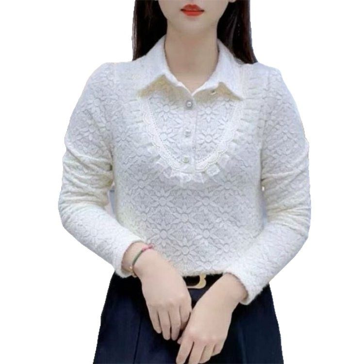 宽松显瘦时尚蕾丝衬衫领加绒上衣