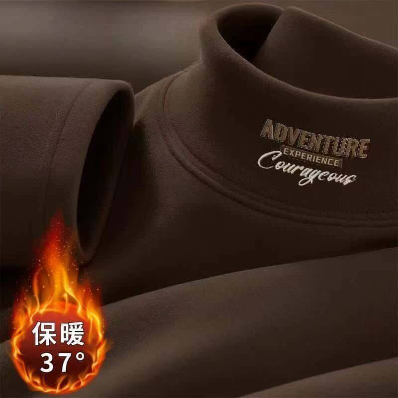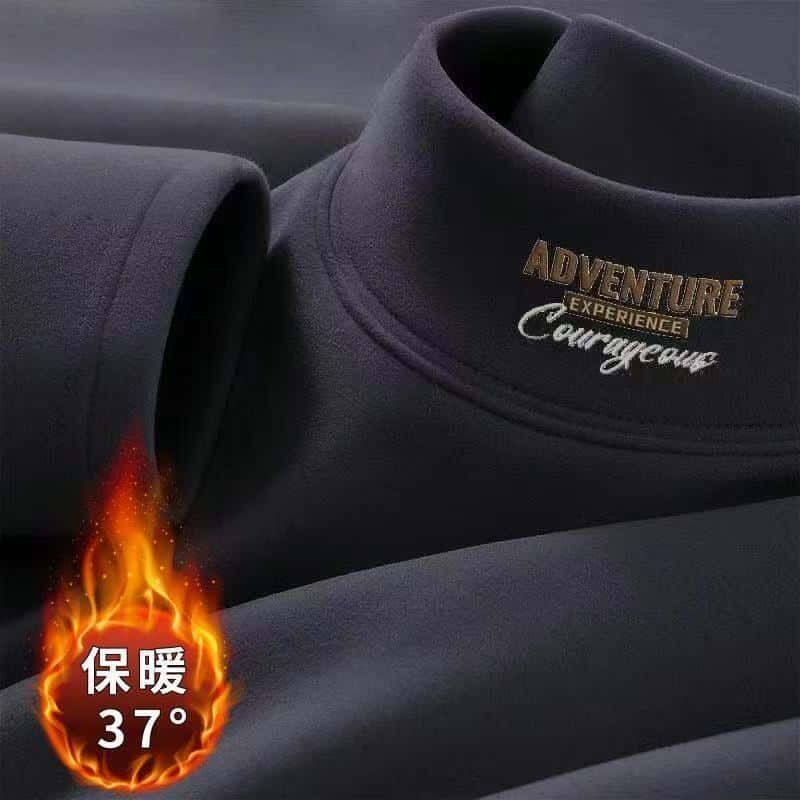秋冬季男士百搭t恤男保暖双面德绒长袖半高领打底衫男J/2件文化衫