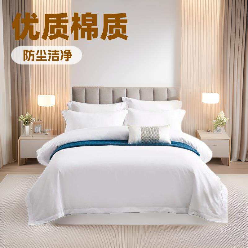 上品四件套AY66【40床全用棉草贡缎被套床单枕套白色布床笠款纯棉