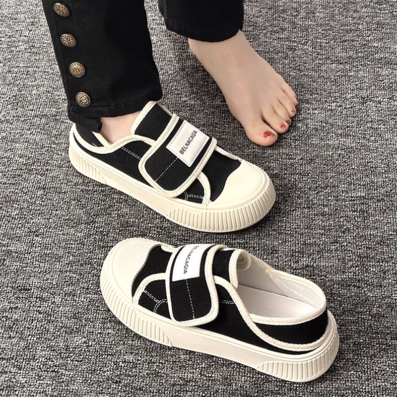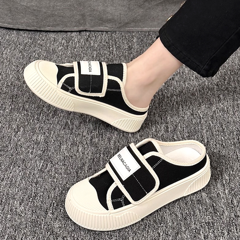 魔术贴厚底帆布鞋女2025年春季新款一脚蹬两穿懒人板鞋包头半拖鞋