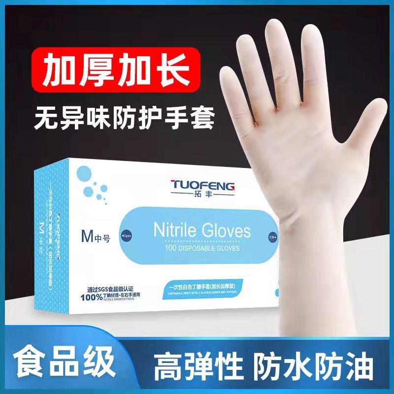 拓丰一次性手套丁腈乳胶PVC加长加厚食品级厨房家用防水橡胶洗碗