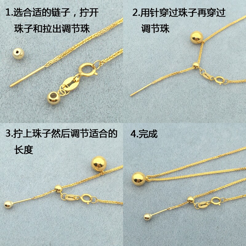 0.5mm很细最细项链带珠钛钢针式防丢万能链串珠18k不掉色万能项链