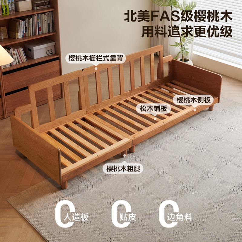 全友家居2025新款可拆洗猫爪布艺实木沙发客厅直排高端樱桃木沙发