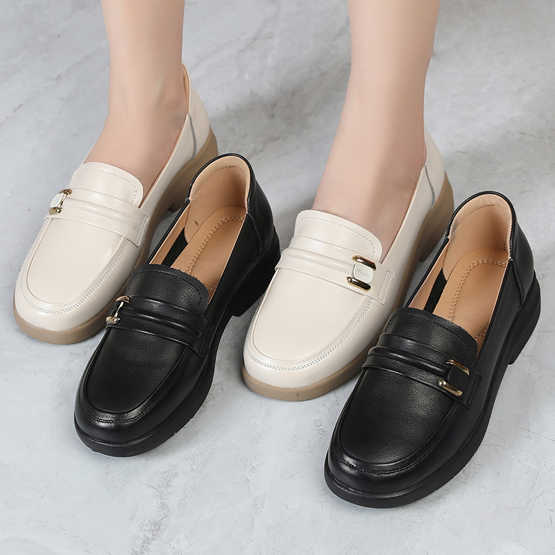 真皮平底单鞋春夏英伦风乐福鞋舒适大码女鞋一脚蹬防滑软底妈妈鞋