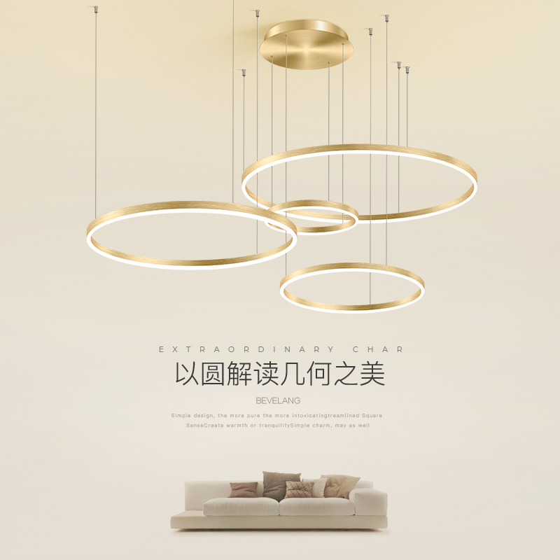 客厅吊灯现代简约个性创意大厅圆环灯护眼后现代大气别墅复式楼灯