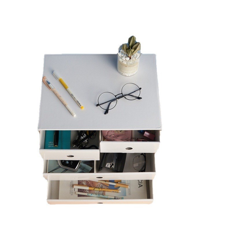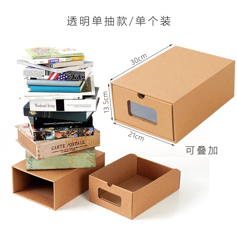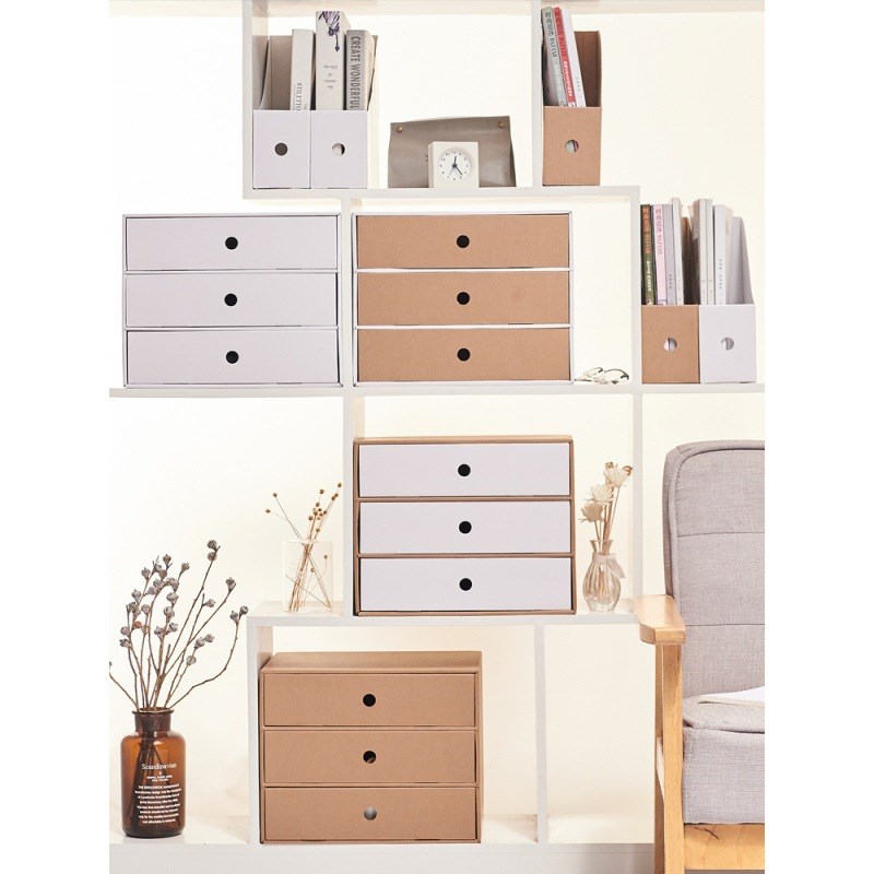 纸质收纳盒桌面多层办公室整理票据收纳A4文件夹牛皮纸抽屉简约