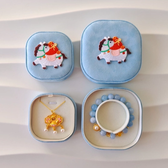 2026新款小马宝宝周岁百天满月黄金银镯长命锁本命年红绳手链礼盒