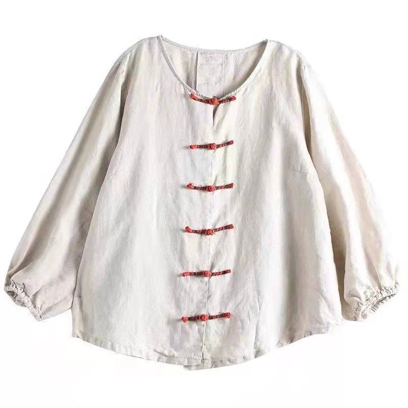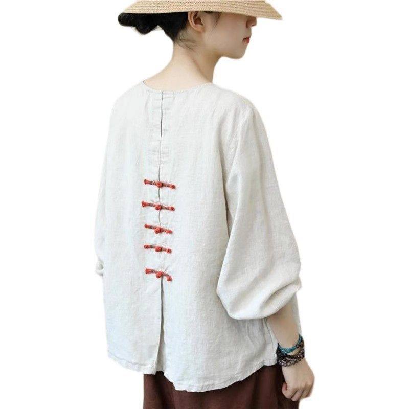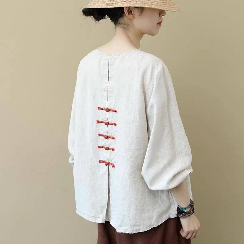 复古宽松显瘦长袖衬衫女2025春夏新款文艺民族风百搭休闲棉麻上衣