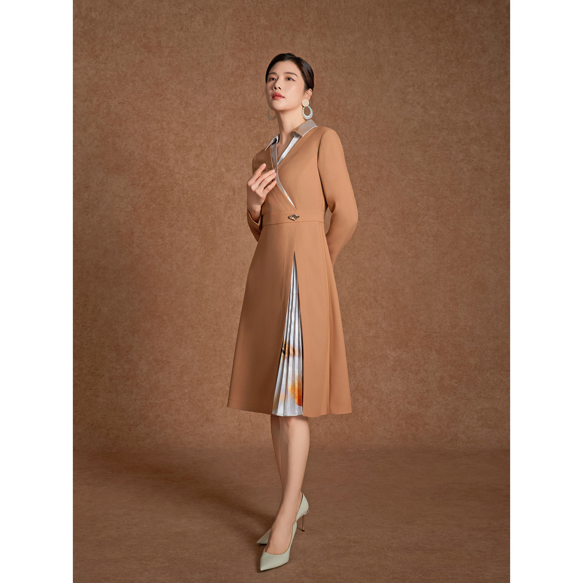 【漫天霞光】BBLLUUEE粉蓝衣橱2026春装新款艺术通勤感拼接连衣裙