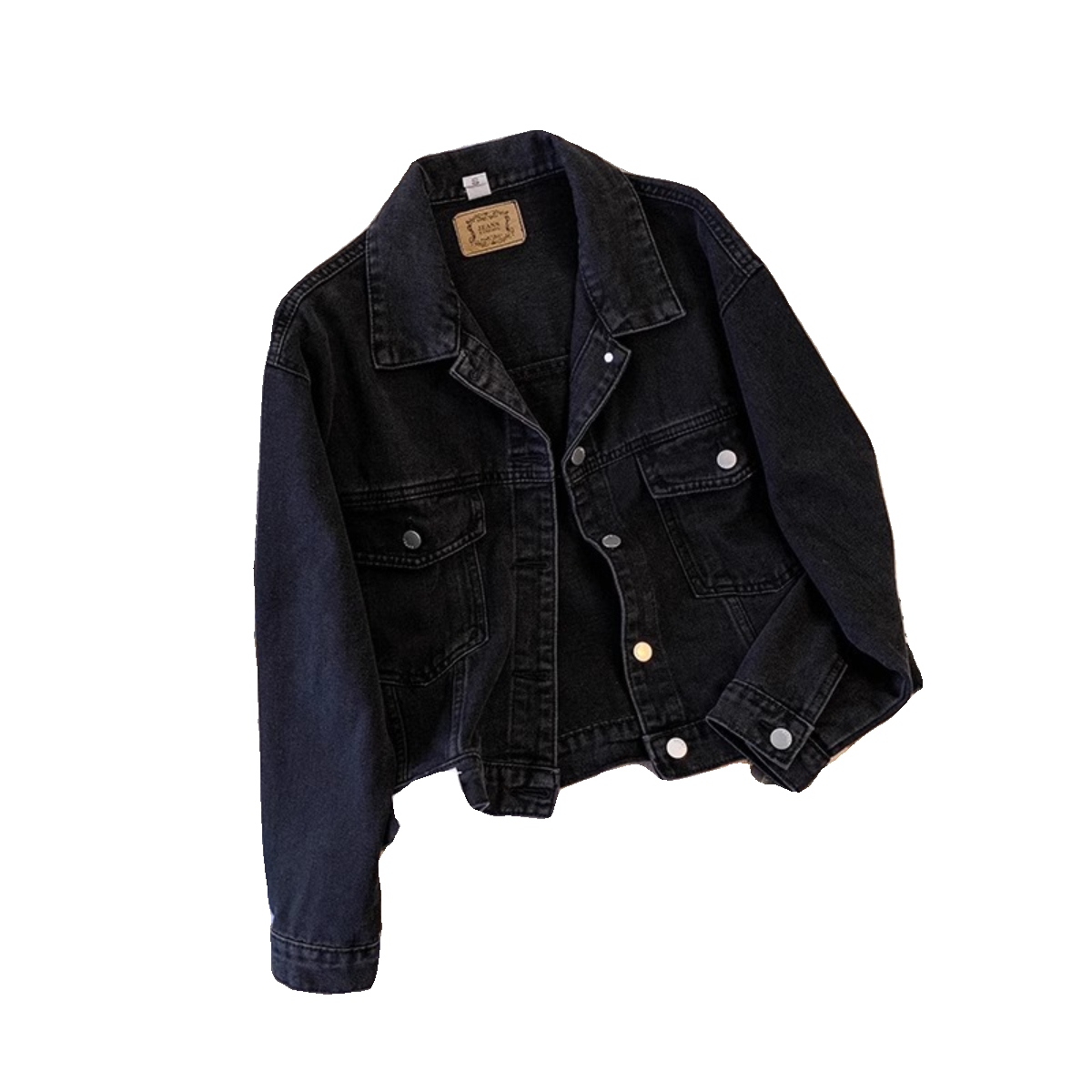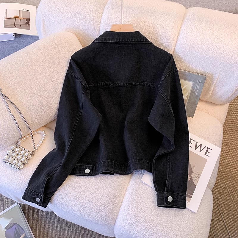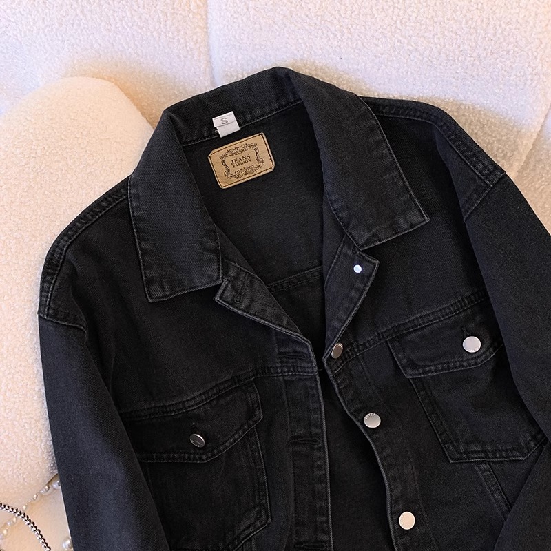 黑色短款牛仔外套女春秋2024新款今年流行小个子港风宽松夹克上衣