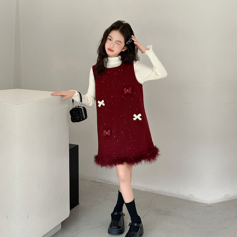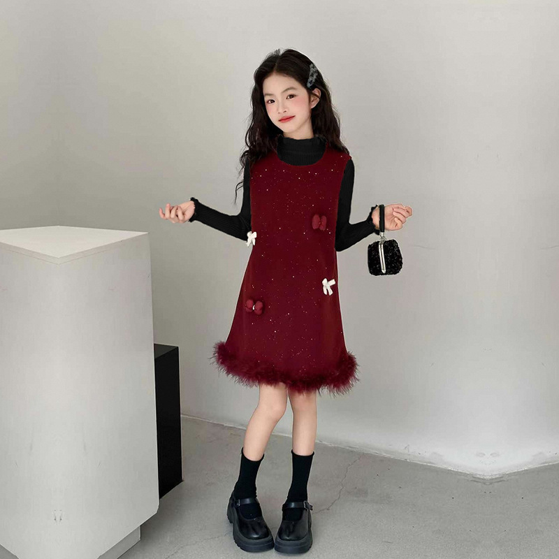 女童新年超好看冬裙厚款2025新款儿童冬天裙子初中生女孩冬装套装