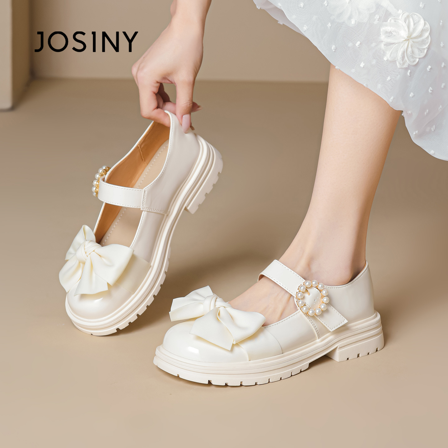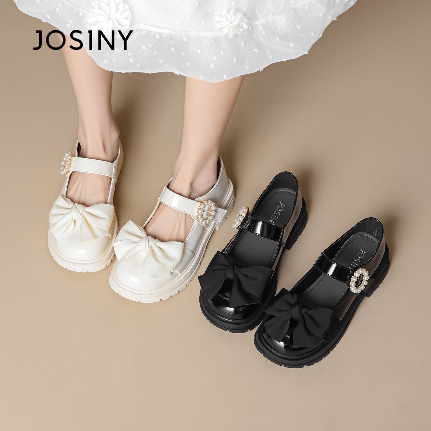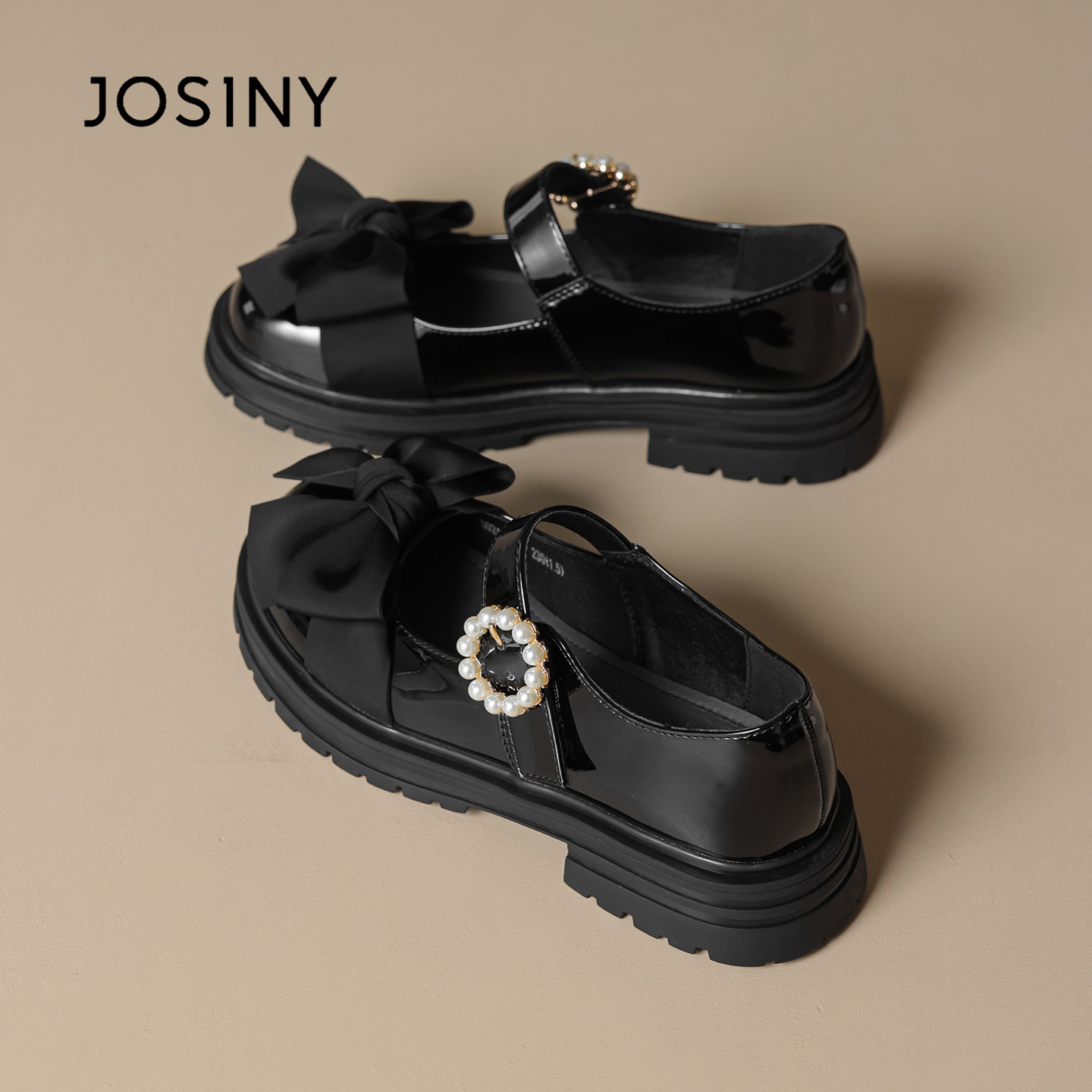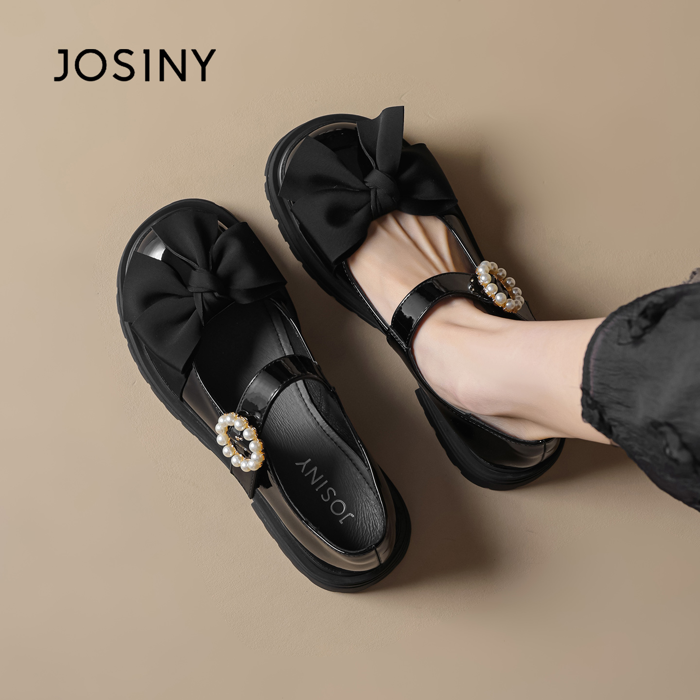 卓诗尼蝴蝶结时装凉鞋女2025夏季新款黑色复古一字带厚底洛丽塔鞋