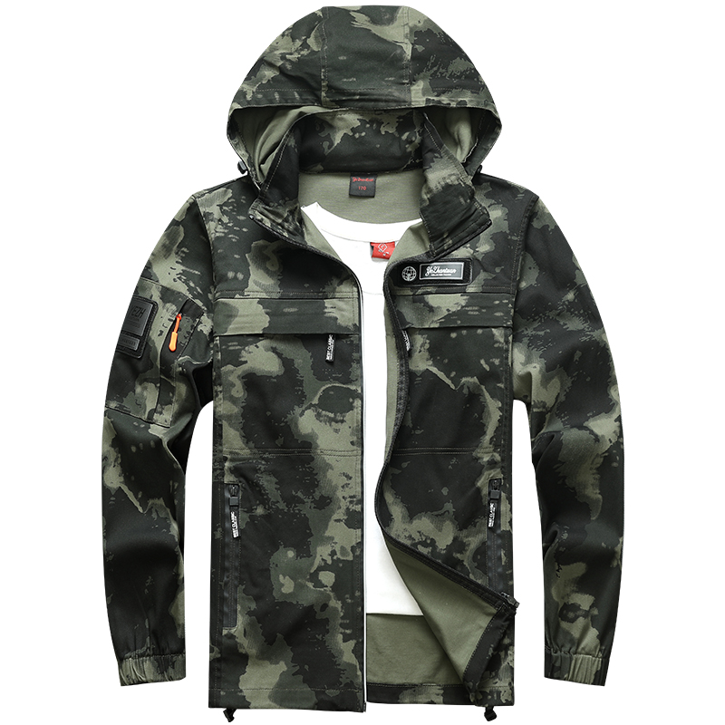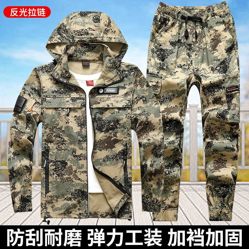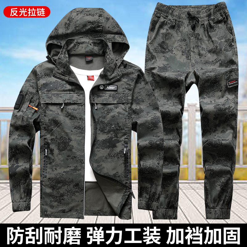 春秋工作服套装男弹力耐磨连帽宽松迷彩电焊工地防烫劳保服工装