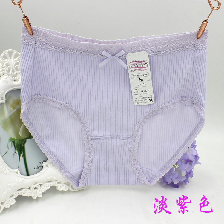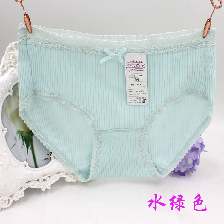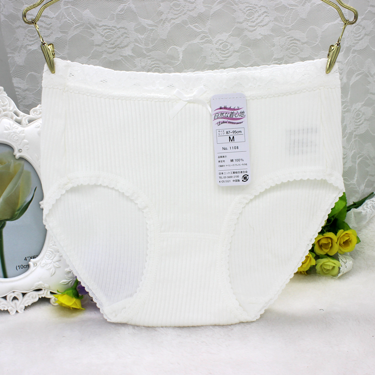 纯棉中腰女士内裤女式100%全棉无痕蕾丝 透气棉质大码胖MM三角裤