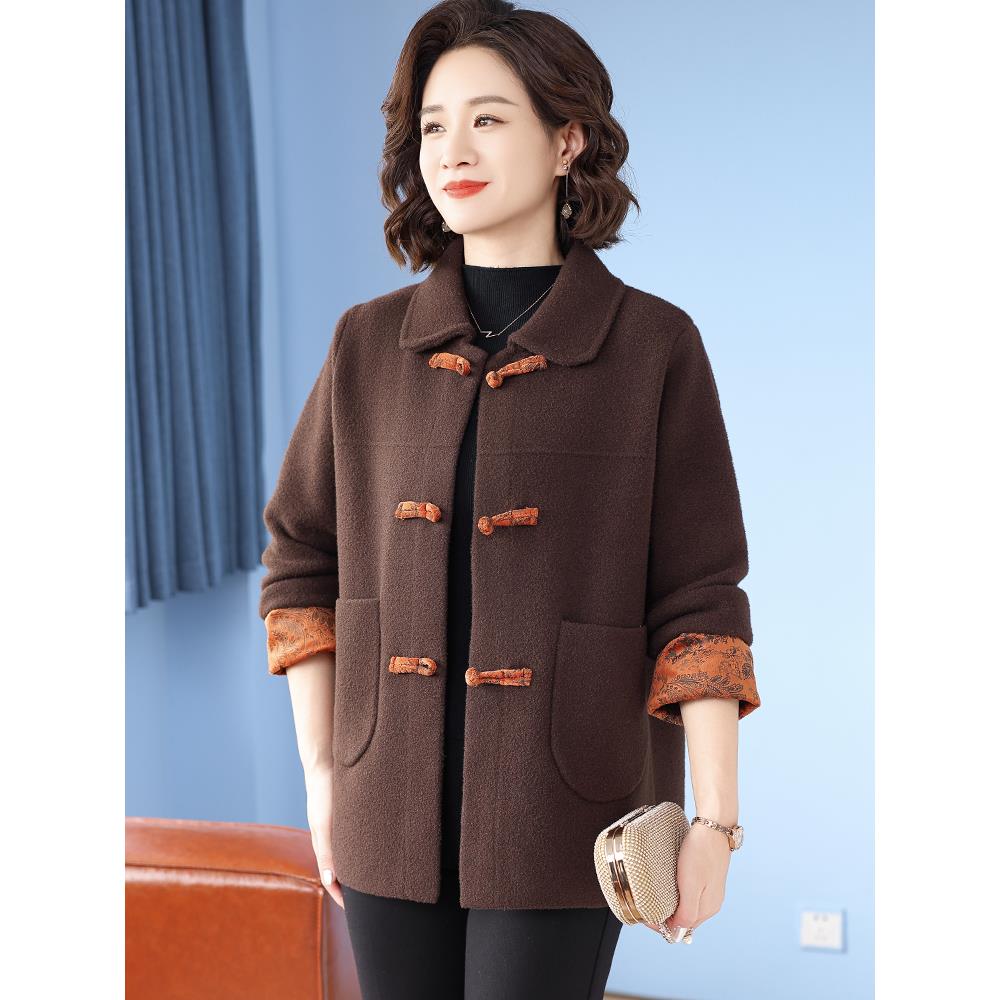 妈妈秋装外套洋气高贵2025新款中老年春秋中年女装大码毛呢上衣服