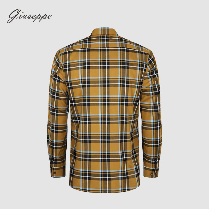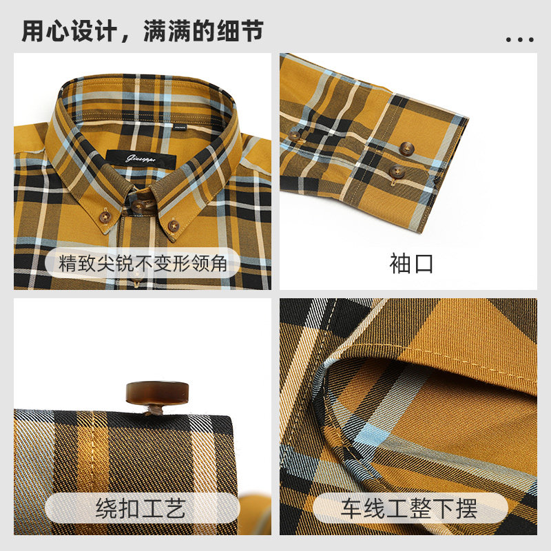 乔治白春秋男士长袖衬衫休闲纽扣领格子上衣直筒微弹