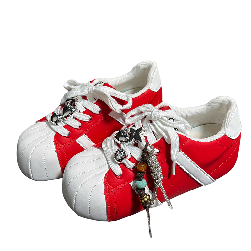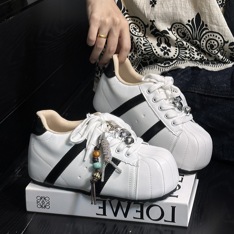欧货真皮大头系带厚底增高休闲板鞋女丑萌面包鞋百搭运动小白鞋潮