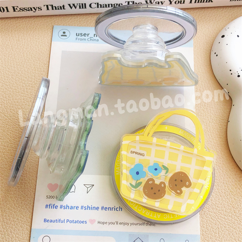 创意苹果购物袋摇摇乐磁吸手机气囊支架可伸缩适用magsafe指环扣