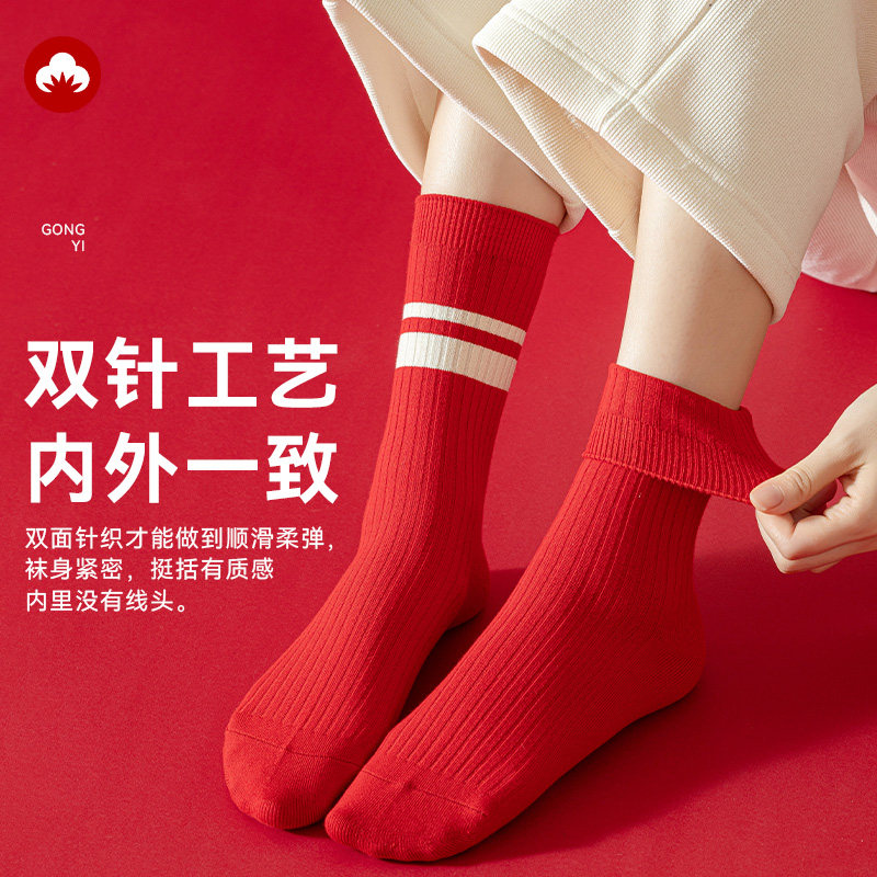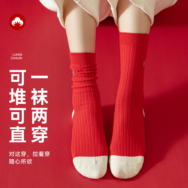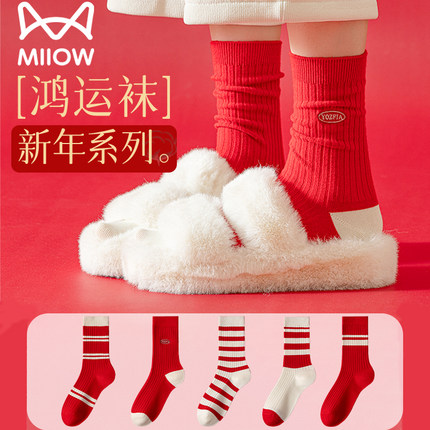 猫人优品本命年大红色女中筒袜子