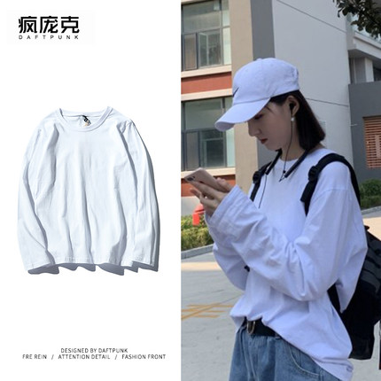 25韩国ins复古基础款纯色春季打底衫内搭纯棉百搭男女长袖T恤bf风
