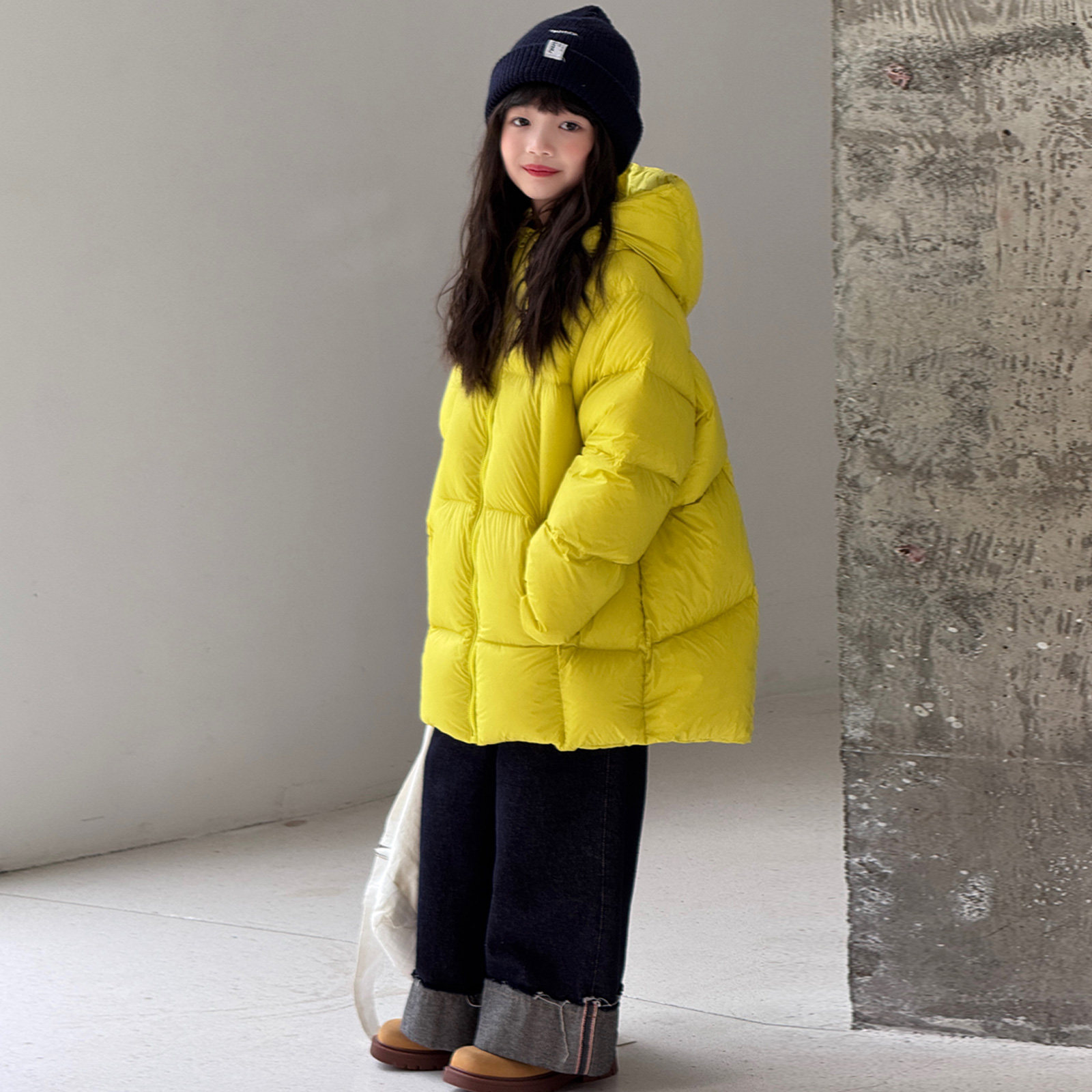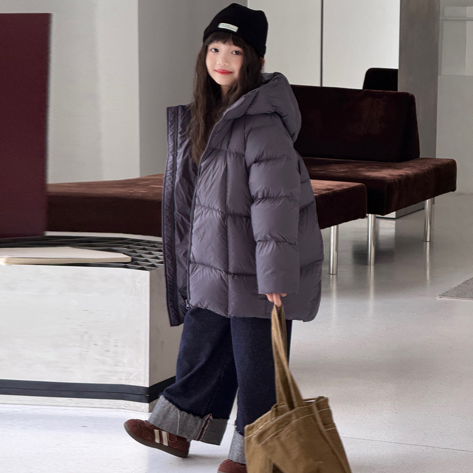 儿童羽绒服韩版冬季中长款男童女童大童白鸭绒中长款加厚连帽外套