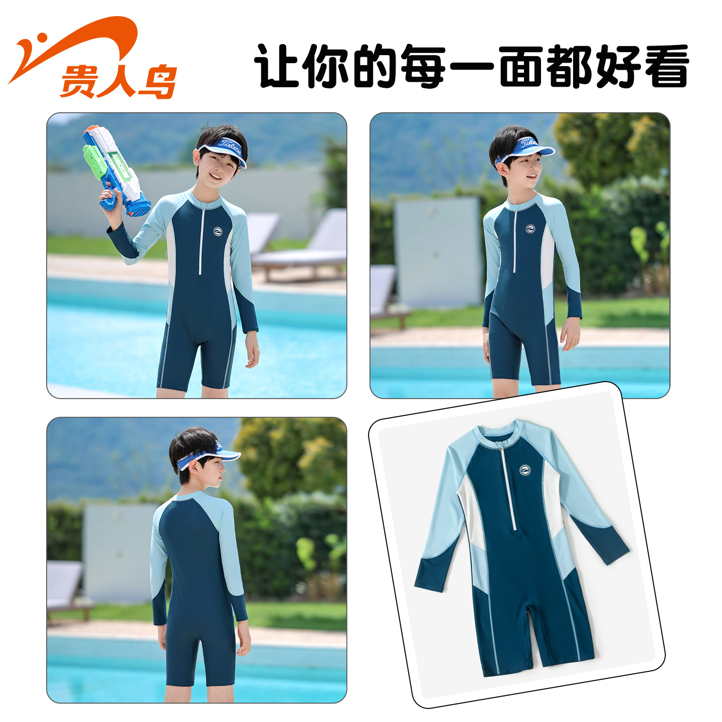 贵人鸟儿童泳衣男童2025新款连体长袖防晒中大童青少年游泳套装夏
