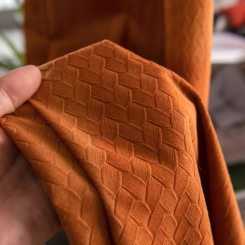 北欧轻奢窗帘卧室遮光简约现代客厅隔热南瓜橙天鹅绒布丝绒落地窗