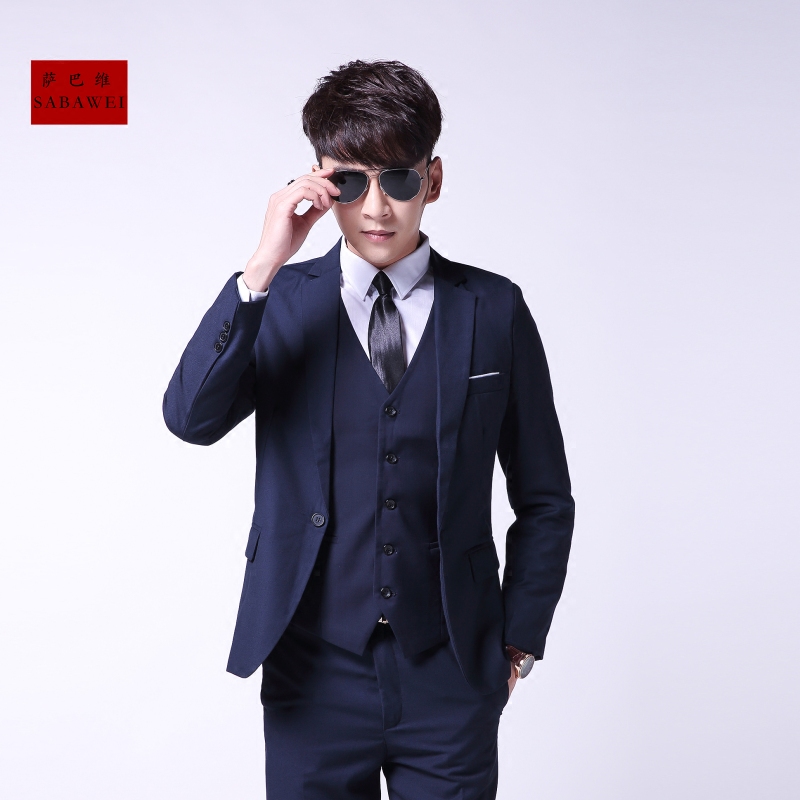 萨巴维西服套装男士三件套商务正装职业西装修身伴郎新郎结婚礼服