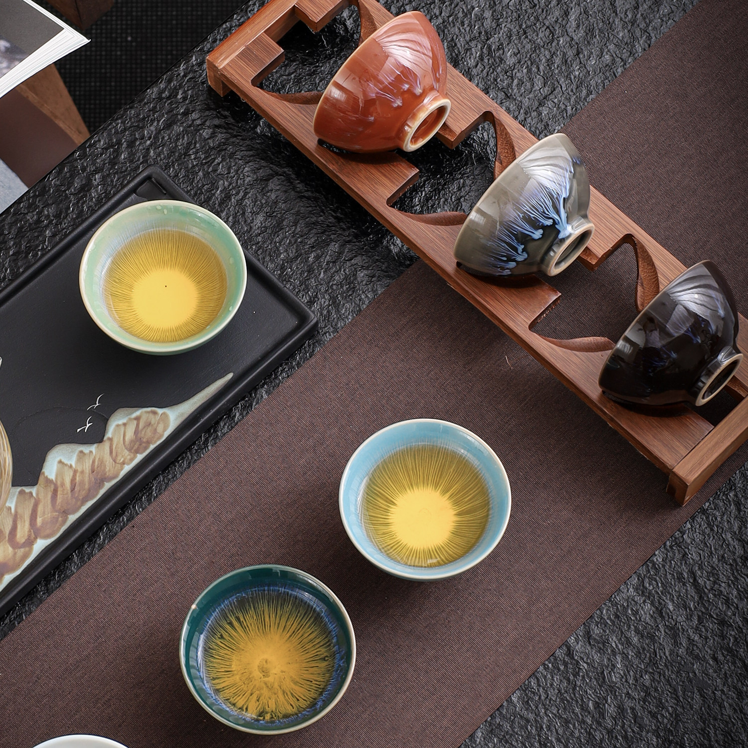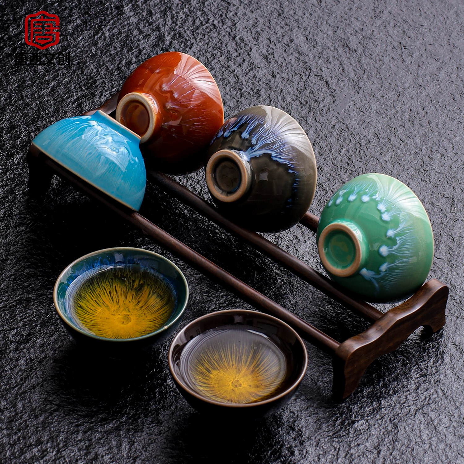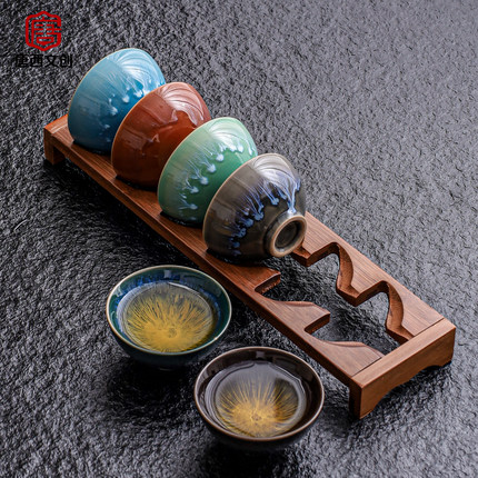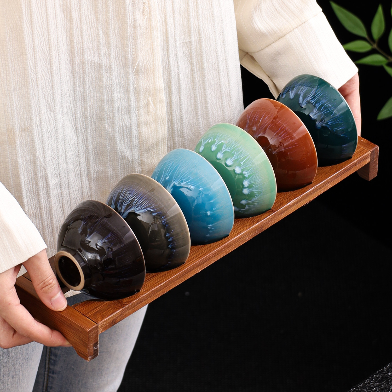窑变建盏茶盏陶瓷大号斗笠杯茶杯6只不同颜色茶碗品名杯套装杯架