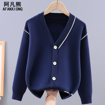 男童开衫毛衣针织外套儿童春秋款2025新款中大童男孩纯棉上衣洋气