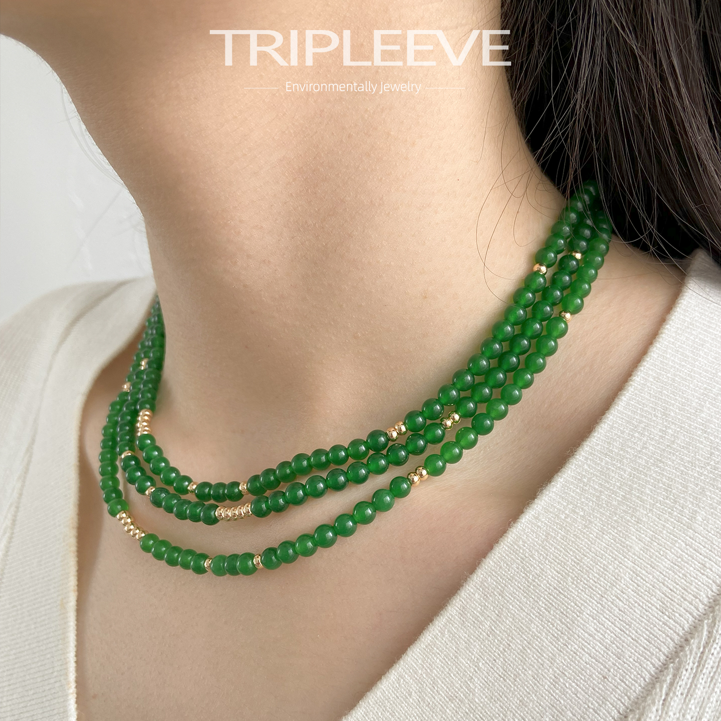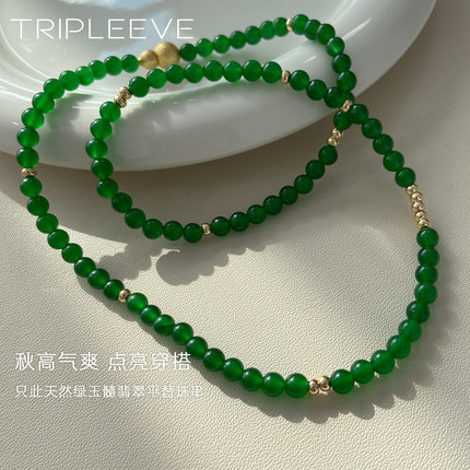 【春和景明】天然绿玉髓拉丝金葫芦扣小米珠翡翠平替项链帝王绿